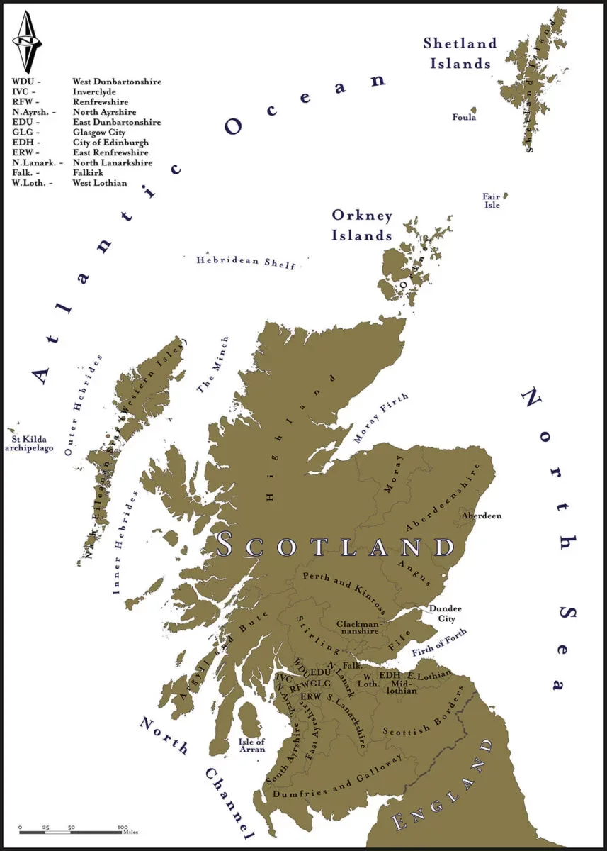 The Isle of Harris is located in the Outer Hebrides (top left)